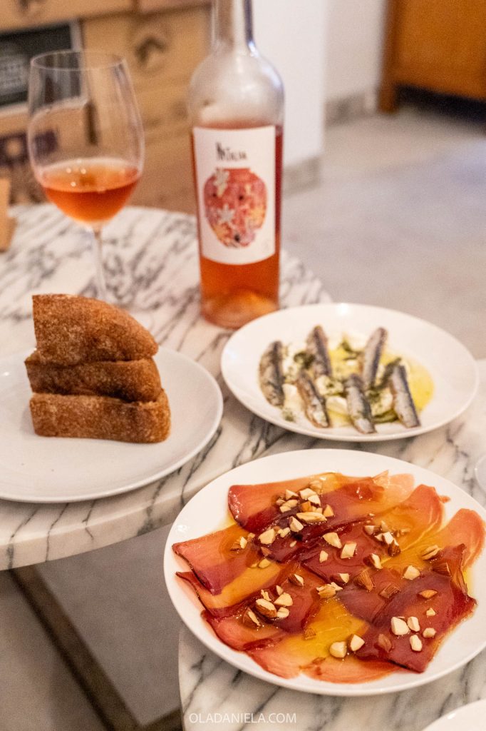 This little wine bistro was one of our best meals in the western Algarve. Located on a backstreet of Aljezur’s new town, inside the light-filled space, staff are cracking open bottles of mostly natural or biodynamic Portuguese wines paired with little snacks and a changing seasonal menu. To start, we ordered muxama, a traditional tuna prosciutto from the Algarve – it’s the best I’ve had – served with a zesty olive oil and a sprinkle of toasted almonds. I still dream of the biquerões fumados (smoked anchovies), plated on housemade labneh with a good glug of olive oil.