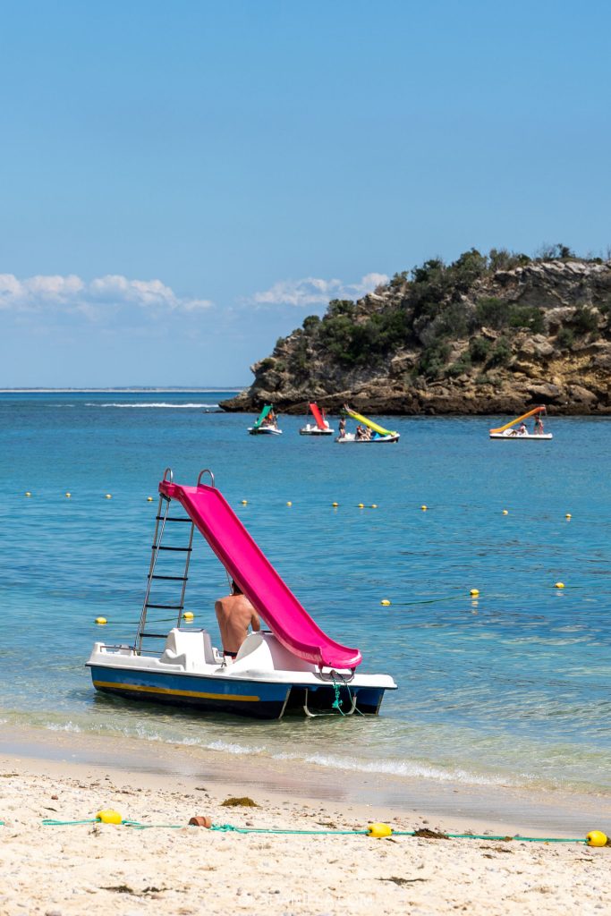 I usually bring my own beach umbrella, but this praia does have sun loungers and parasols for rent at reasonable rates. If you prefer adventure, you can also rent kayaks, silly slide paddle boats or go snorkeling.